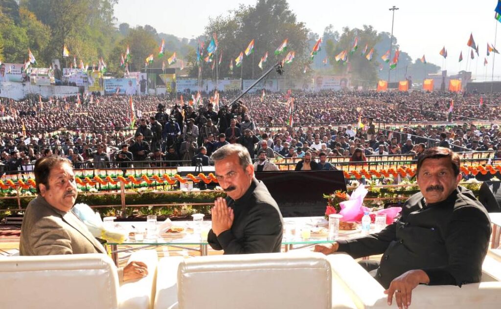 ठाकुर सुखविंद्र सिंह सुक्खू ने कहा कि दो साल पहले हिमाचल में प्रदेश की जनता के आशीर्वाद और राहुल गांधी, प्रियंका गांधी और राजीव शुक्ला के दृढ़ प्रयासों से कांग्रेस सरकार बनी। मुख्यमंत्री ने कहा कि उन्होंने चालीस वर्षों तक जीवन में संघर्ष किया। उन्होंने कहा कि कांग्रेस पार्टी ने उन्हें हमेशा महत्त्वपूर्ण पद दिए और 11 दिसंबर को एक किसान और कर्मचारी केे बेटे ने मुख्यमंत्री पद की शपथ ली।