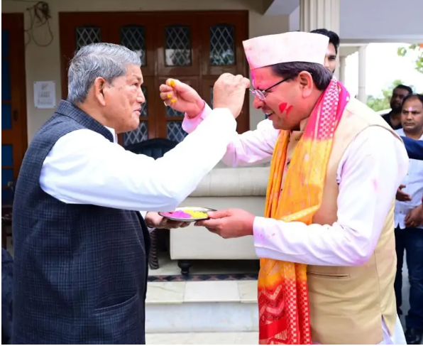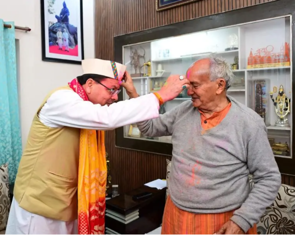 होल्यारों से फुर्सत पाकर सीएम धामी ने पूर्व सीएम भगत सिंह कोश्यारी, हरीश रावत व सतपाल महाराज आदि को होली का टीका लगाया।