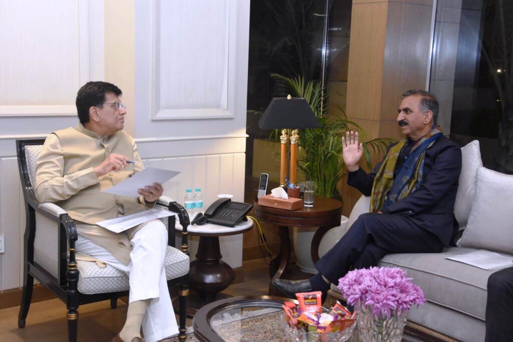 सीएम सुक्खू ने केंद्रीय वाणिज्य एवं उद्योग मंत्री पीयूष गोयल से की भेंट