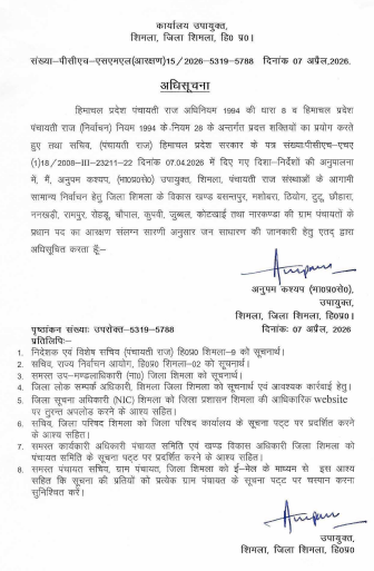 हिमाचल प्रदेश में पंचायत चुनावों को लेकर लंबे समय से जारी असमंजस के बीच अब संशोधित आरक्षण रोस्टर जारी कर दिया गया है। हिमाचल प्रदेश हाईकोर्ट के स्पष्ट निर्देशों के बाद राज्य सरकार और जिला प्रशासन ने पहले जारी रोस्टर को निरस्त कर नई सूची जारी की है, जिससे चुनावी समीकरणों में बड़ा बदलाव देखने को मिल रहा है।