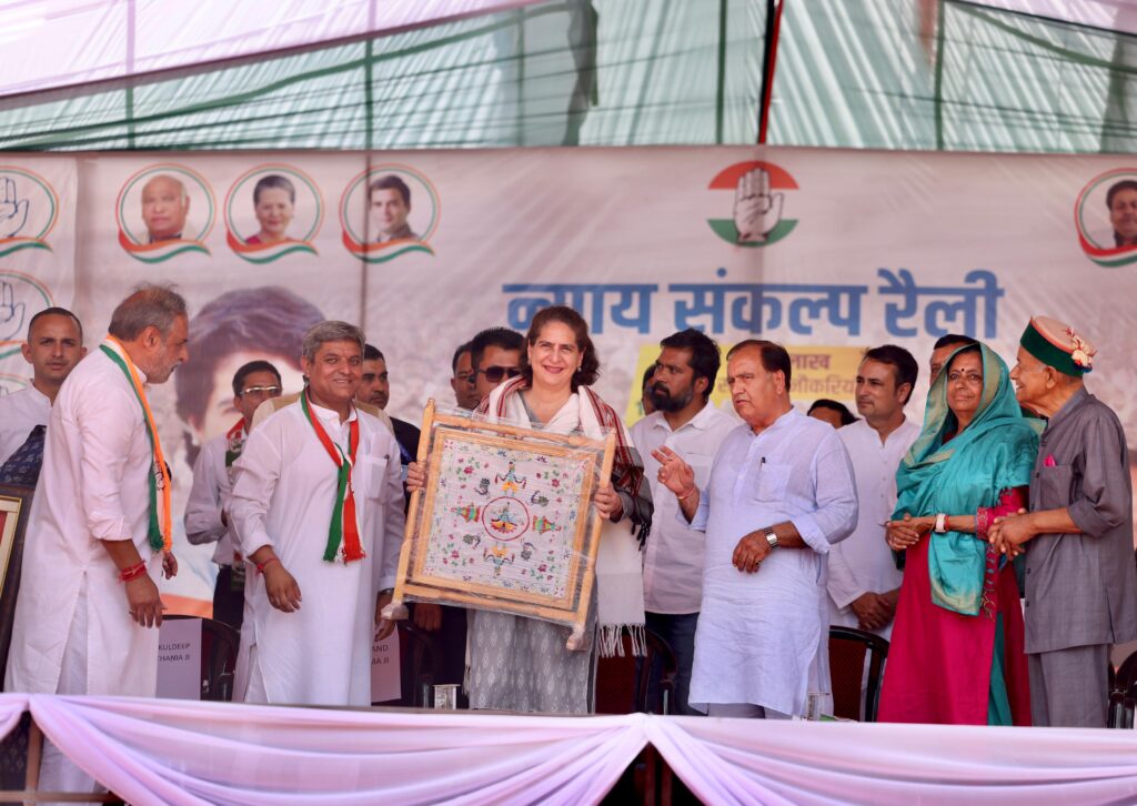 कांग्रेस महासचिव प्रियंका गांधी ने आज काँगड़ा लोकसभा क्षेत्र से कांग्रेस के उम्मीदवार आनंद शर्मा के पक्ष में प्रचार किया। उन्होंने चंबा और शाहपुर के चंबी में जनसभाएँ की और कांग्रेस के सभी उम्मीदवारों का जिताने की अपील की। प्रियंका गांधी ने कहा कि हिमाचल देवभूमि और वीरभूमि है, यहां के लोग ईमानदार हैं। उन्होंने कहा कि प्रधानमंत्री नरेंद्र मोदी ने एक साज़िश के तहत पूरे धनबल के साथ राज्य के ईमानदार लोगों की चुनी हुई ईमानदार सरकार को गिराने का प्रयास किया है। उन्होंने कहा कि मोदी को हिमाचल प्रदेश के लोगों से कोई प्यार नहीं है, बल्कि भाजपा नेताओं का एकमात्र मक़सद सभी हथकंडे अपनाकर सत्ता हासिल करना है। उन्होंने कहा कि प्रधानमंत्री नरेंद्र मोदी हिमाचल प्रदेश को अपना घर बताते हैं, लेकिन जब राज्य में आपदा आई तो वह एक बार भी हिमाचल प्रदेश नहीं आए और केंद्र की ओर से आपदा प्रभावितों के लिए एक पैसा तक नहीं दिया।