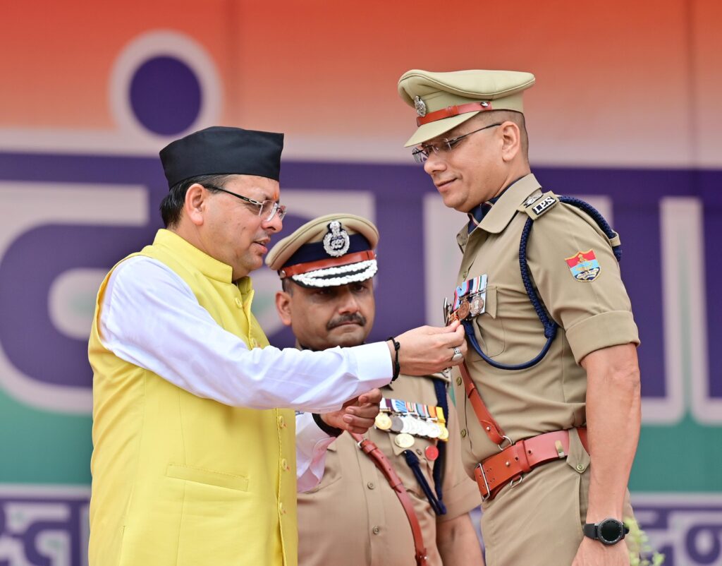 सेनानायक, एस०डी०आर०एफ० उत्तराखण्ड मणिकान्त मिश्रा और पुलिस अधीक्षक, जनपद उत्तरकाशी अर्पण यदुवंशी को मुख्यमंत्री ने विशिष्टि कार्य के लिए सराहनीय सेवा पदक से सम्मानित किया। वर्ष 2023 में पांचवी एशियन यूथ एथलेटिक्स, ताशकंद, उजबेकिस्तान में आयोजित अन्तरराष्ट्रीय एथलेटिक्स चैंपियनशिप में स्वर्ण पदक अर्जित करने वाले प्रियांशु, रजत पदक प्राप्त करने वाले राहुल सरनालिया एवं एथलेटिक्स प्रशिक्षक लोकेश कुमार को भी मुख्यमंत्री द्वारा सम्मानित किया गया।