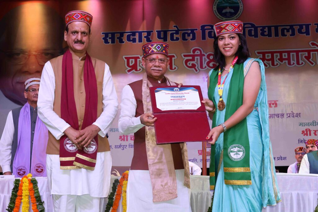 राज्यपाल शिव प्रताप शुक्ल ने गुरुवार को सरदार पटेल विश्वविद्यालय (एसपीयू) मंडी के पहले दीक्षांत समारोह में 333 विद्यार्थियों को डिग्रियां प्रदान की। राज्यपाल इस समारोह में बतौर मुख्य अतिथि उपस्थित रहे तथा 12 स्वर्ण पदक विजेताओं सहित 36 मेधावी विद्यार्थियों को पदक प्रदान किए।